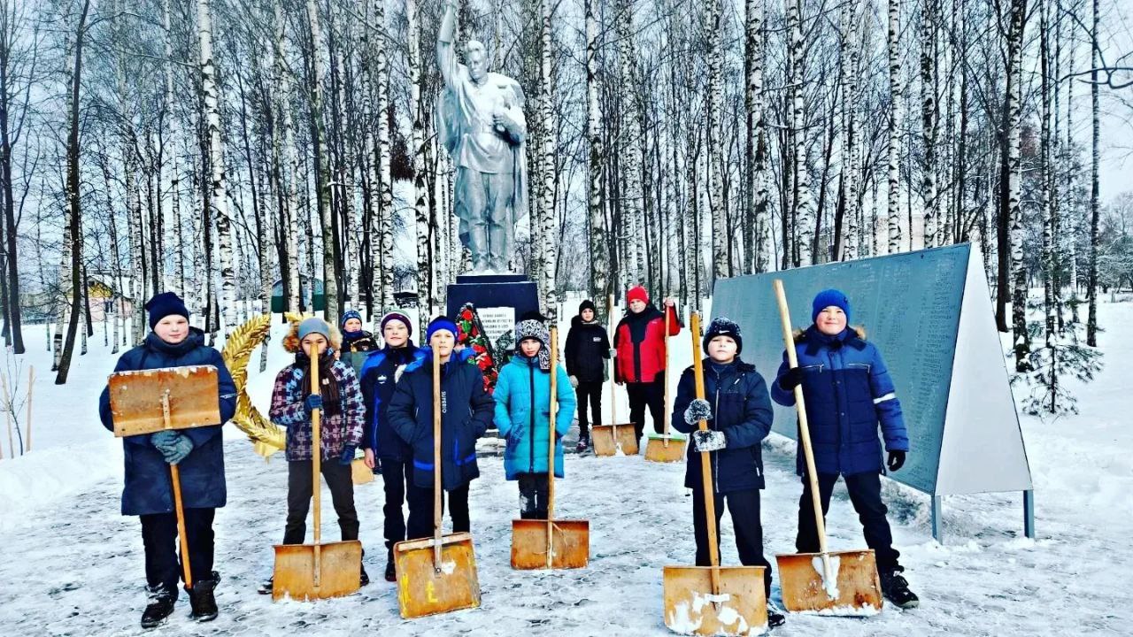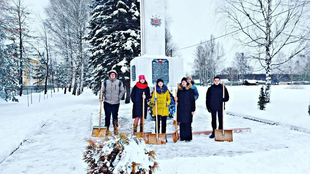Миротворцы совместно с пионерами оказали помощь в уборке снегана на территории обелиска в честь воинов 31-й гвардейской стрелковой дивизии 11 - й армии и братской могилы советских воинов и партизан.